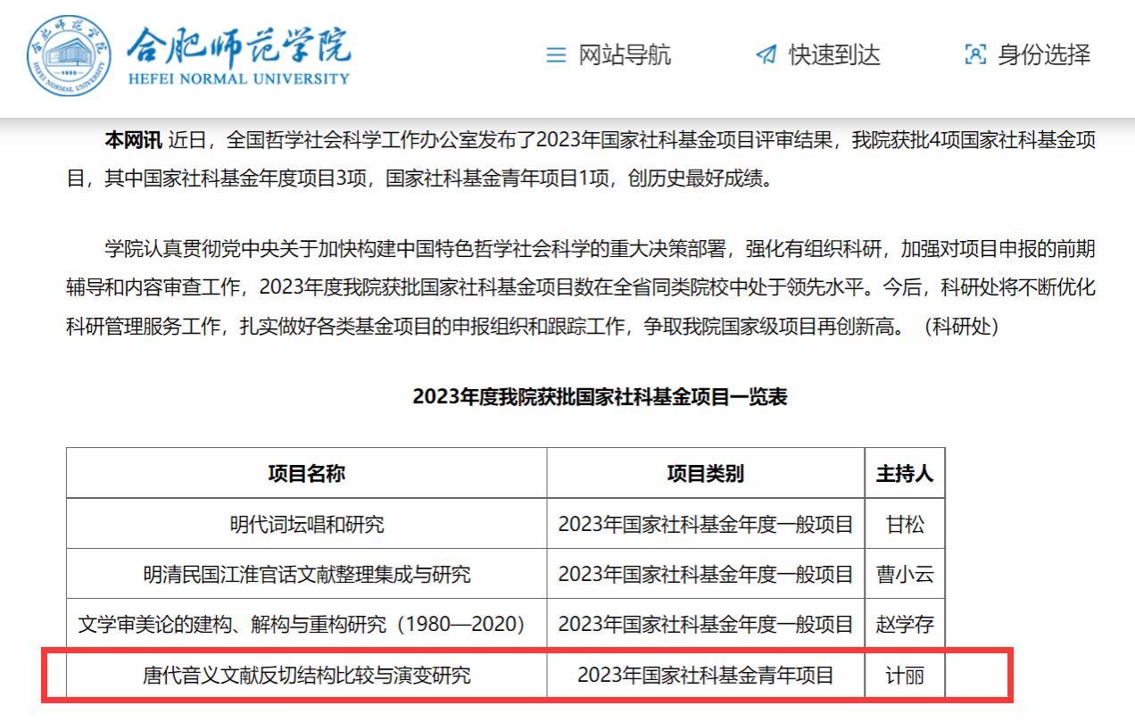 计丽主持的《唐代音义文献反切结构比较与演变研究》获2023年国家社科基金青年项目