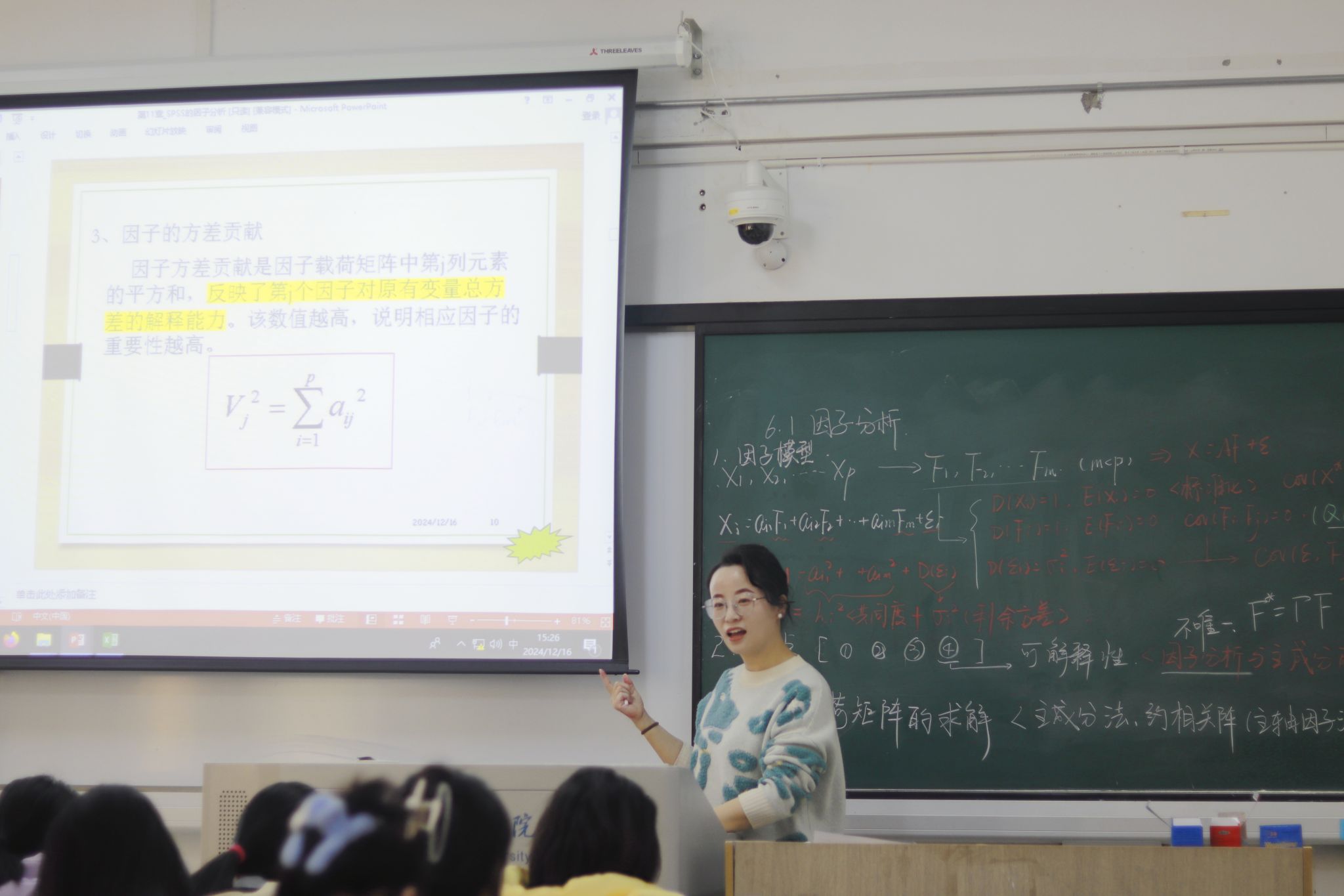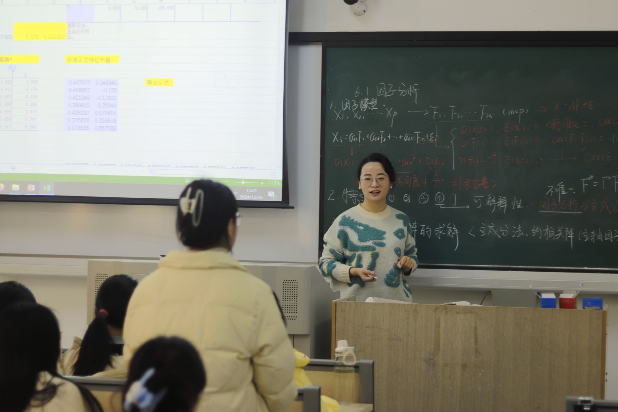创新教学模式,改进教学方法。在讲台上,刘兮逐渐变得游刃有余。入校以来,她先后承担了15门课程的教学,陆续给本科生、硕士研究生开设《应用多元统计分析》《统计预测与决策》《统计建模》等专业核心课程,年均学时高达332,远超学校基准要求。