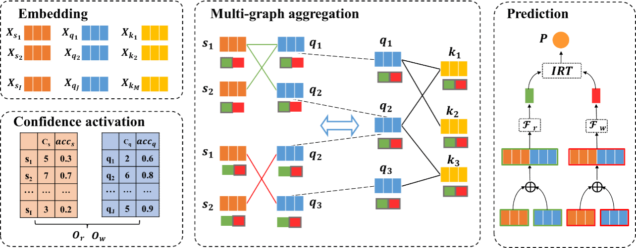 学生的答题行为、历史作业数据,甚至解题的犹豫时间这些看似零散的行为数据,都被实时编码进小任的个性化学习模型中。这是苏喻在个性化学习认知诊断领域的最新成果——置信度引导的多图认知诊断(CMM)模型,他的团队正在尝试打造出一位擅长“望闻问切”的AI老中医,在学生大量出错前“精准把脉”,敏锐识别出其认知路径上的微小偏移。